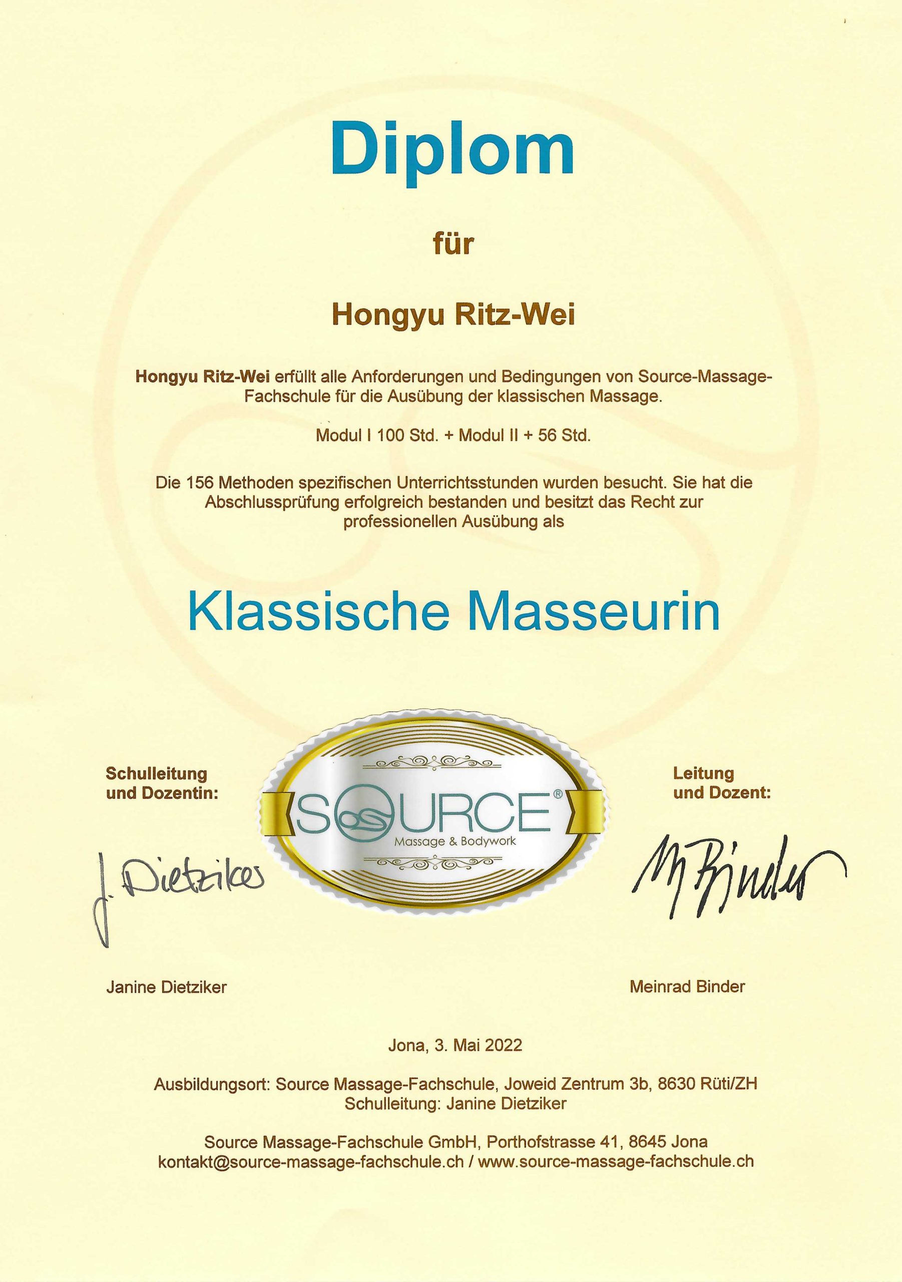 Hongyu Ritz-Wei, Ihre Expertin bei Panda Massage St.Gallen